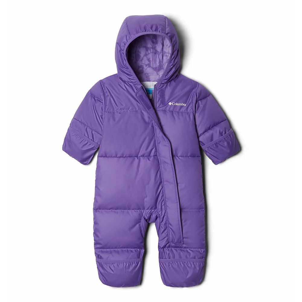 Your little one will be warm from head to toe in this girls’ Columbia bunting.