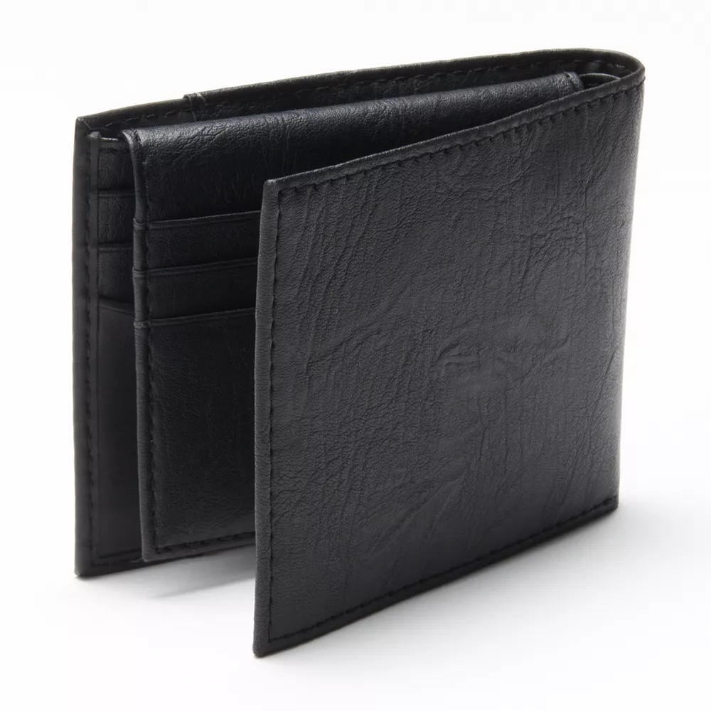 - Interior: 1 large currency slip pocket, 9 card slots, 2 slip pockets & 1 clear ID window