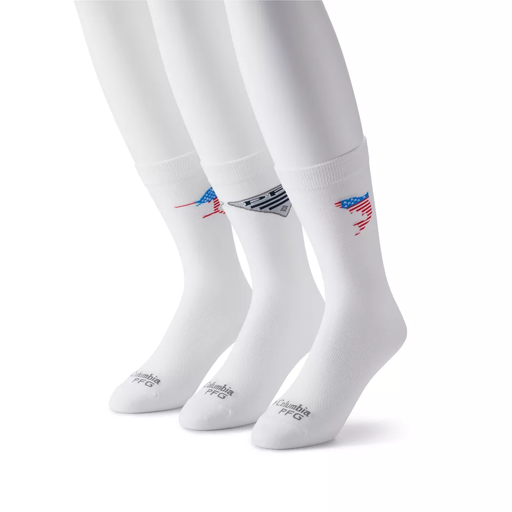 Fancy footwear. These men’s Columbia PFG Americana crew socks are perfect to accent your everyday wardrobe.