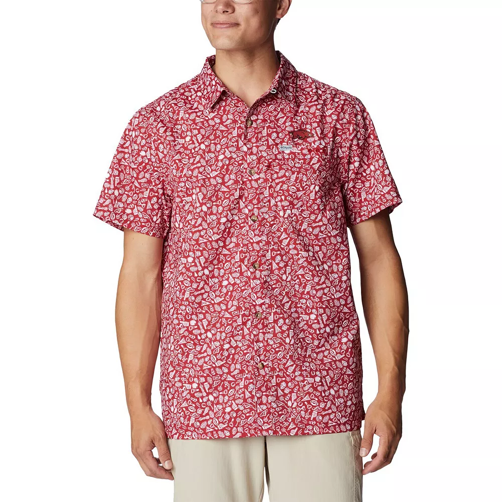 Make the most of warm weather when you wear this Arkansas Razorbacks Super Slack Tide shirt from Columbia. It features Omni-Shade technology for built-in sun protection, ventilation through the back mesh insert and a handy interior patch at the bottom for cleaning sunglasses. A repeating Arkansas Razorbacks pattern all over adds the perfect finishing touch to this eye-catching button-up.