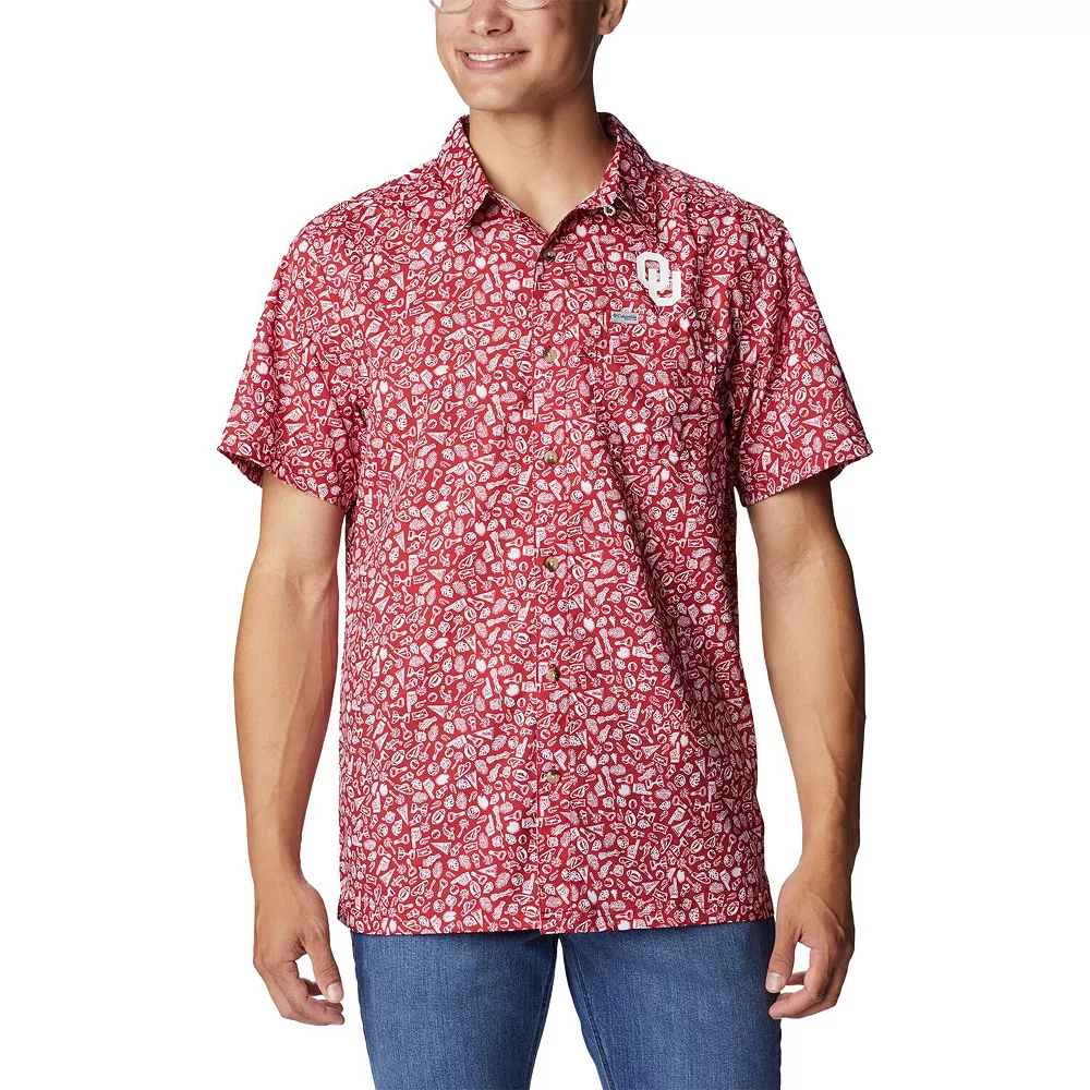 Make the most of warm weather when you wear this Oklahoma Sooners Super Slack Tide shirt from Columbia. It features Omni-Shade technology for built-in sun protection, ventilation through the back mesh insert and a handy interior patch at the bottom for cleaning sunglasses. A repeating Oklahoma Sooners pattern all over adds the perfect finishing touch to this eye-catching button-up.