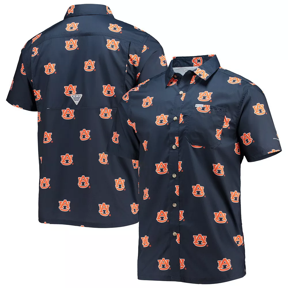 Make the most of warm weather when you wear this Auburn Tigers Super Slack Tide shirt from Columbia. It features Omni-Shade technology for built-in sun protection, ventilation through the back mesh insert and a handy interior patch at the bottom for cleaning sunglasses. A repeating Auburn Tigers pattern all over adds the perfect finishing touch to this eye-catching button-up.