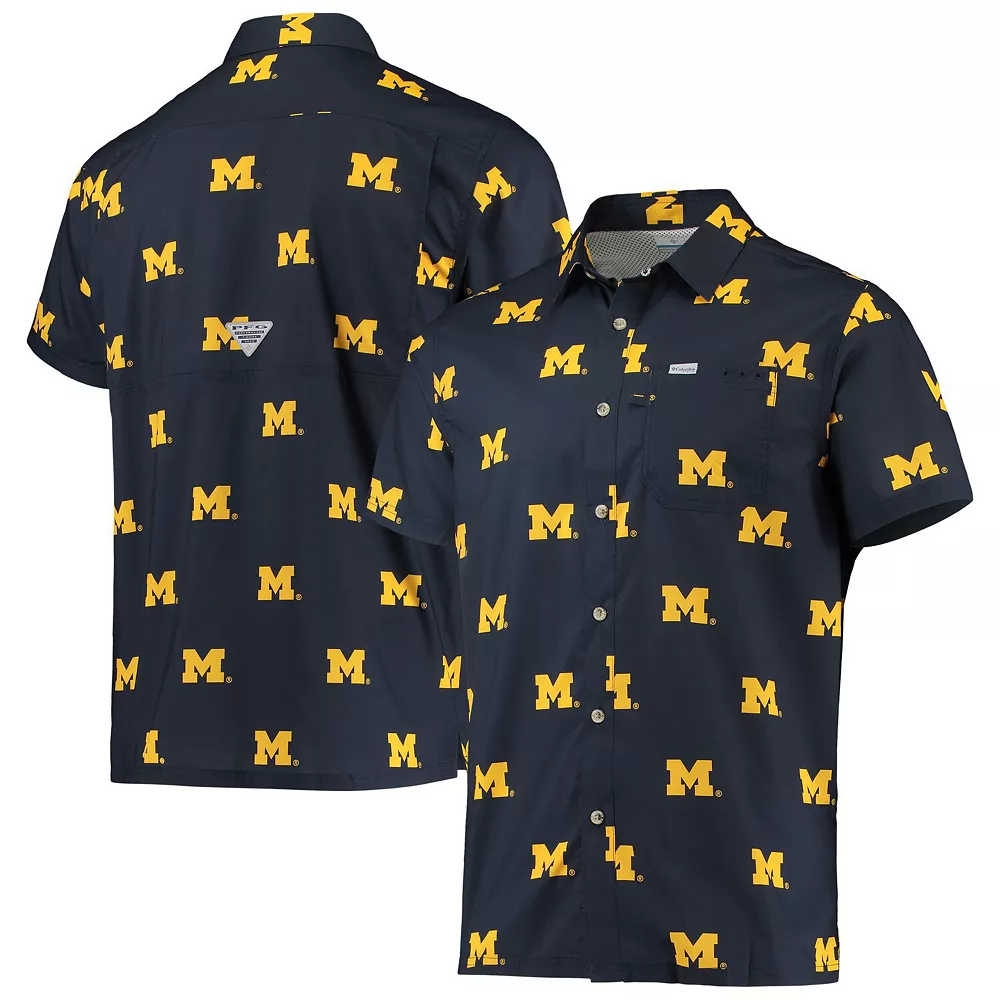 Make the most of warm weather when you wear this Michigan Wolverines Super Slack Tide shirt from Columbia. It features Omni-Shade technology for built-in sun protection, ventilation through the back mesh insert and a handy interior patch at the bottom for cleaning sunglasses. A repeating Michigan Wolverines pattern all over adds the perfect finishing touch to this eye-catching button-up.