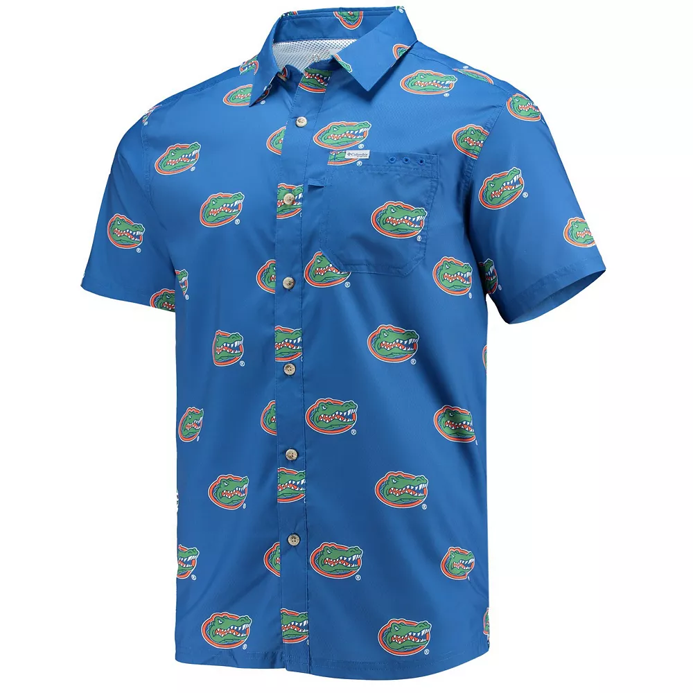 Make the most of warm weather when you wear this Florida Gators Super Slack Tide shirt from Columbia. It features Omni-Shade technology for built-in sun protection, ventilation through the back mesh insert and a handy interior patch at the bottom for cleaning sunglasses. A repeating Florida Gators pattern all over adds the perfect finishing touch to this eye-catching button-up.
