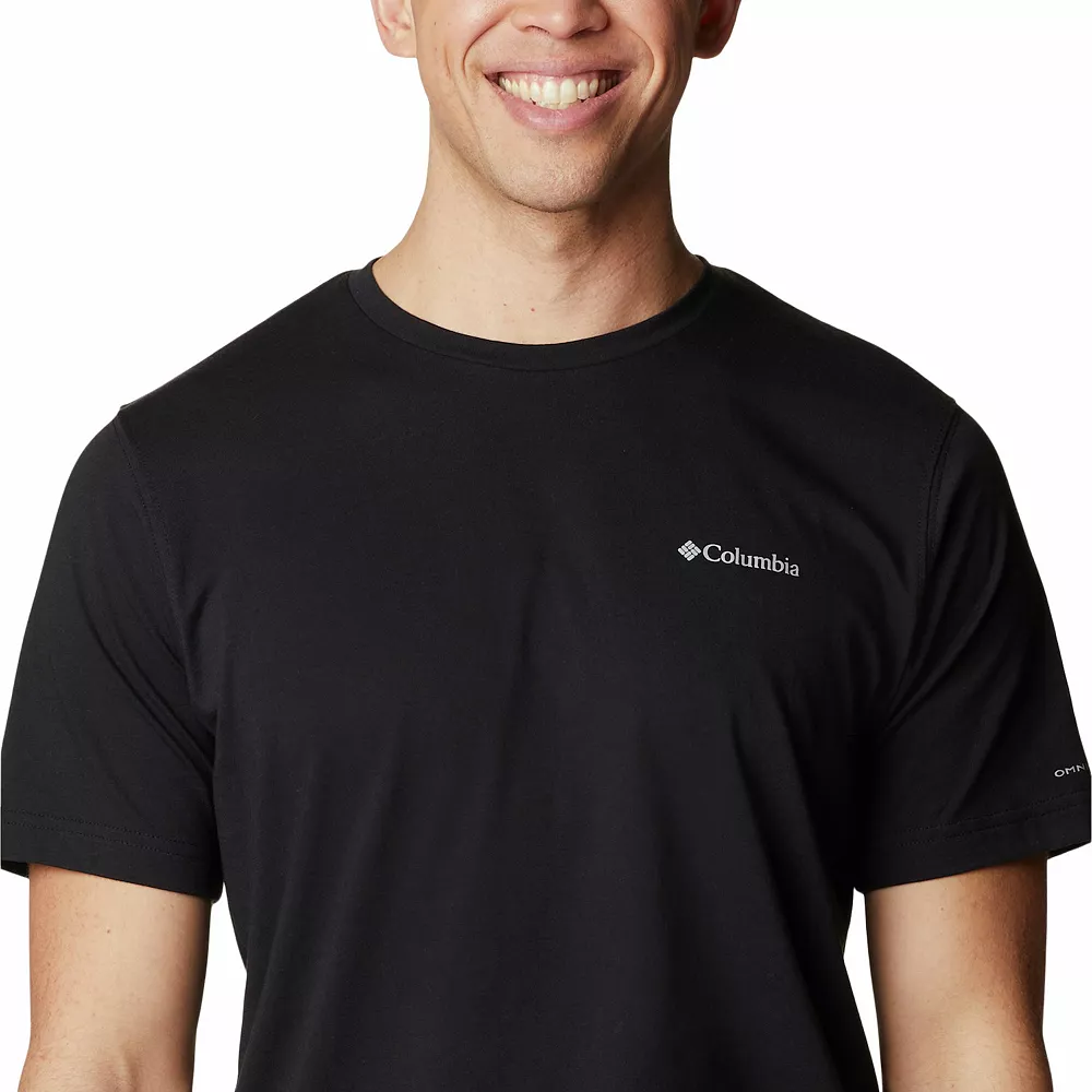 On-the-go style. Featuring Omni-Wick moisture-wicking technology, this men’s Columbia tee keeps you comfortable for the trails ahead.